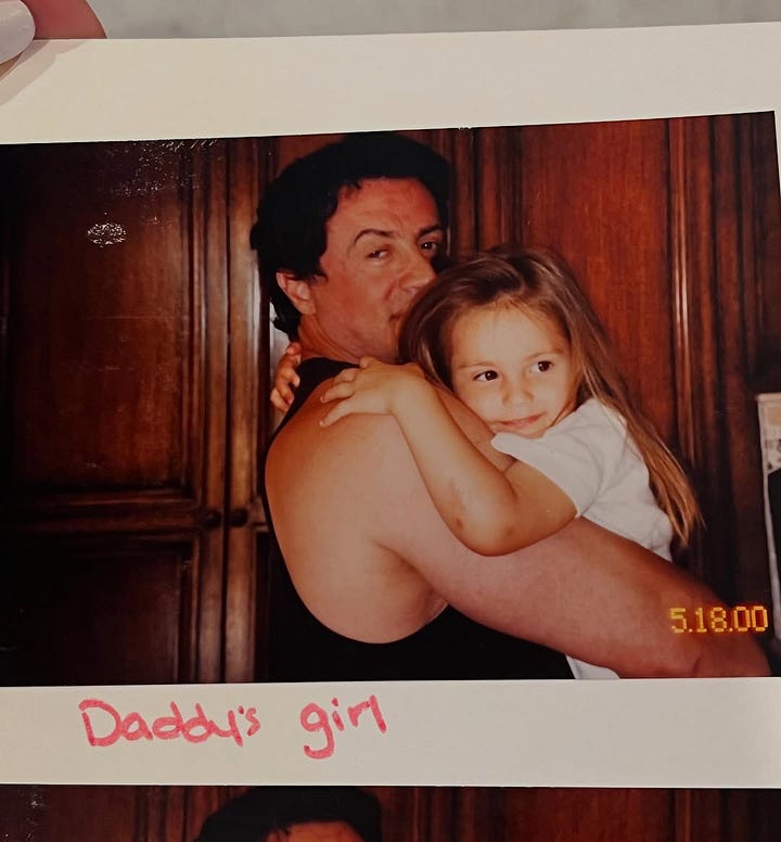From her earliest days, Sophia has brought warmth and vibrancy into the family. The photos Sly shared—Sophia cuddling with the family dog, sharing laughter at Christmas, and grinning during sunlit games of golf—are not just snapshots, but cherished milestones. Each photo is a memory of “Daddy’s girl,” as one old Polaroid fondly puts it. These moments tell the truth about their bond: loving, supportive, unwavering.